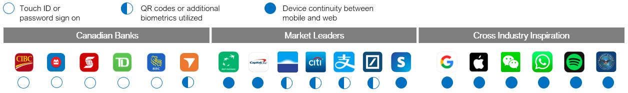 To help define the problem space for the team, I undertook a competitive analysis by looking at industries with similar security requirements to the banking and finance sector, as well as those without. The cross-industry analysis revealed that:
