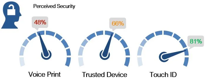 Touch ID, traditional passwords and one-time verification codes (OTVC) have the highest perception of security among the authenticators proposed in the survey, though OTVC is considered inconvenient